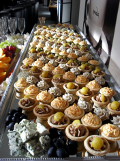 Sealiharull peekoni ja seentega, mini-kanavarras, profitroolid singiga, salaami Fuet, kirsstomat |